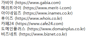 이 외에도 다양한 업체들이 있으니 원하는 가격과 기능, 서비스를 확인하여 적합한 업체를 선택해 도메인을 구매하시기 바