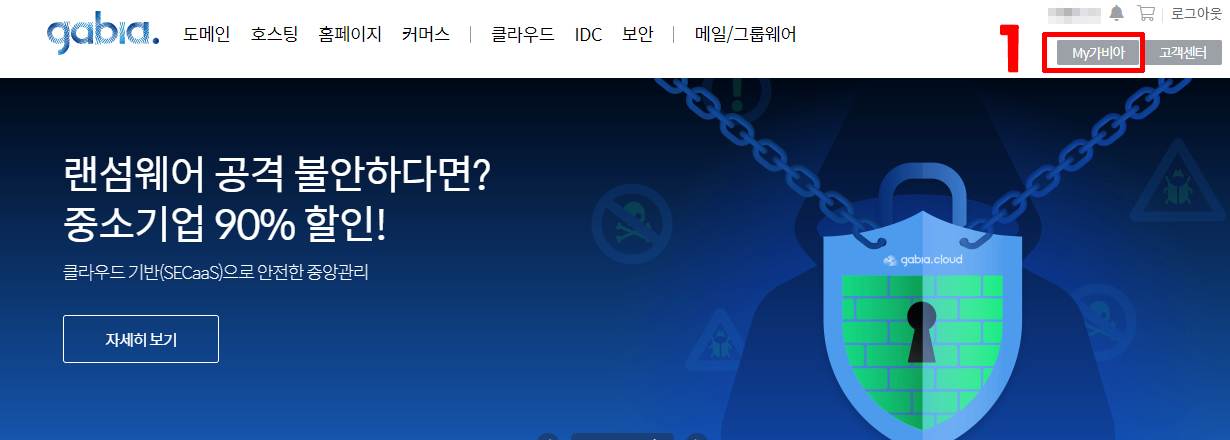 가비아 웹사이트에 로그인한 후, My가비아에서 DNS 관리툴을 선택합니다.