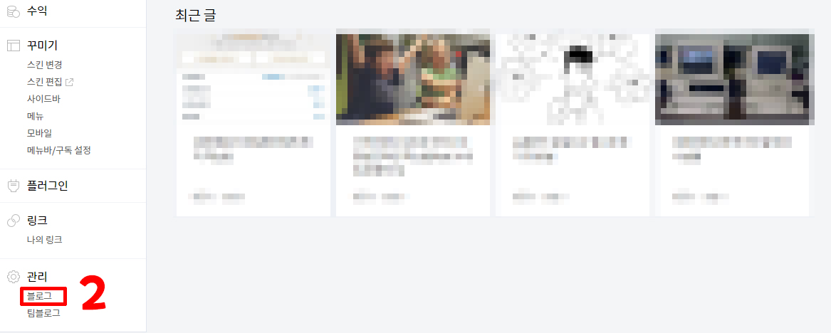 블로그 관리자 홈에서 관리 - 블로그를 선택합니다.