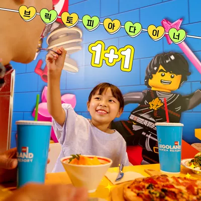 - 주중 브릭 토피아 다이너에서 성인 식사 메뉴 1개 이상 주문시 어린이 메뉴 1개 무료 제공