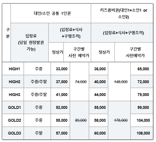 경주 블루원 워터파크 가격