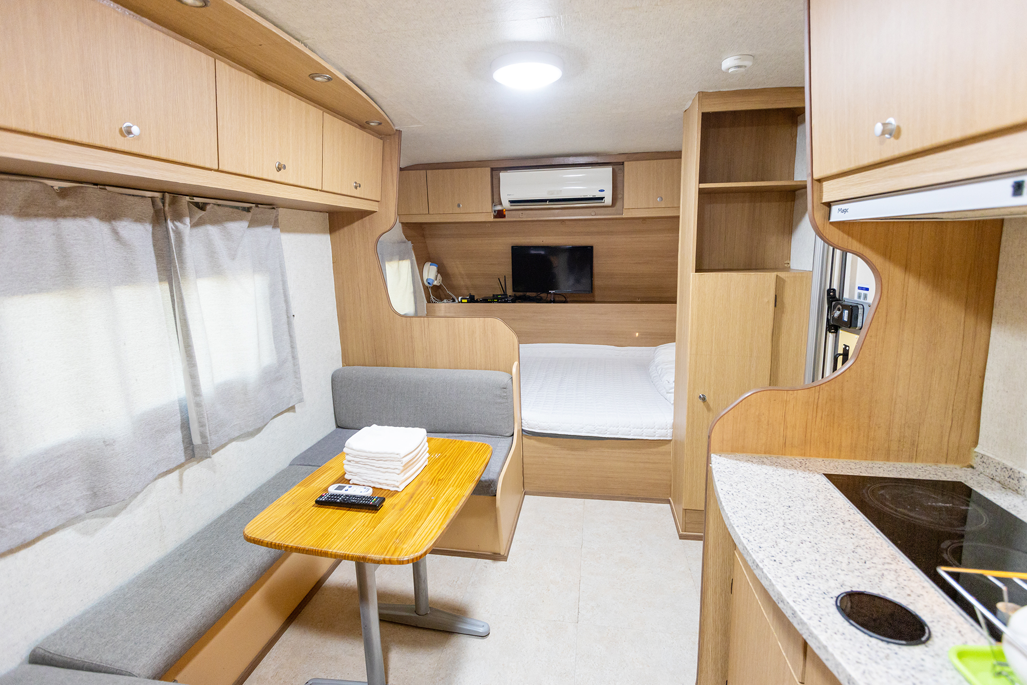 - 퇴실 시에는 비품을 제자리에 빠짐없이 놓은 후, 웰컴센터에서 퇴실정산 및 카라반 키 및 락커키를 반납하시고 퇴실하시면 됩니다.