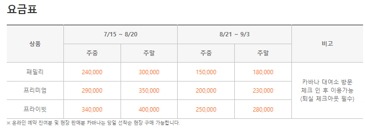 - 카바나는 지정한 예약일(이용일)에만 이용 가능하며, 현장 판매 및 예약 잔여 수량은 당일 선착순으로 가능합니다.
