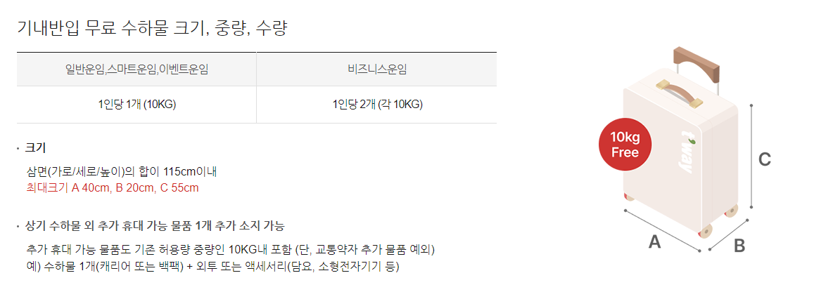 - 단, 특가 운임의 경우 무료 위탁 수하물 불포함