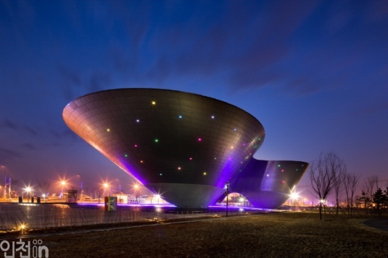 송도 트라이보울은 인천문화재단에서 운영하는 복합문화공간으로, 송도의 인공적인 건축물들 사이에서도 빼어난 존재감을 가지고 있습니다. 이 독특한 공간은 역원뿔형의 삼각 구조물 3개가 물 위에 떠 있는 듯한 형태로 강한 인상을 줍니다. 2010년에 인천도시축전 기념관으로 개관되었으며, 현재는 송도 국제도시의 랜드마크로 자리매김하고 있어요. 트라이보울은 다양한 문화 활동을 즐길 수 있는 장소이면서도 독특한 외관으로 많은 사람들이 방문하여 사진을 찍는 장소가 되기도 합니다. 특히 저녁이 되면 트라이보울은 낮과는 다른 분위기를 선사합니다. 수면 위에 반짝이는 100여 개의 LED등이 설치되어 불빛과 물결이 어우러져 신비로운 분위기를 조성합니다. 이곳은 다양한 CF나 드라마의 촬영지로도 유명하며, 예술적인 사진을 찍어내기에도 좋은 장소입니다.