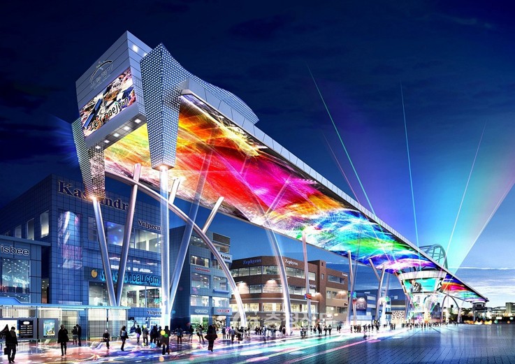 - 초대형 LED 영상 아케이드: 대전 스카이로드는 다양한 크기의 LED 스크린을 이용하여 화려한 영상을 전시하는 아케이드로, 빛나는 영상과 조화로운 디자인으로 주변을 환하게 밝혀줍니다.