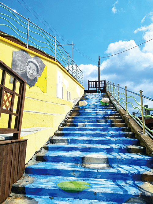 - 마을 내에는 다양한 개성을 지닌 아기자기한 카페들이 위치해 있어 선택하기 어려울 정도로 다양한 경험을 즐길 수 있습니다. 전망대에 있는 몽돌 브라더스와 함께 사진을 찍고 지친 다리를 쉴 수 있는 동포루도 함께 즐겨보세요.