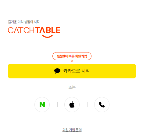 캐치테이블을 사용하려면 먼저 회원 가입을 해야 합니다.